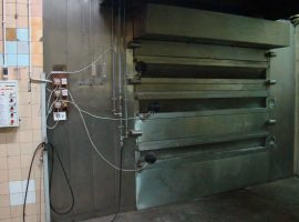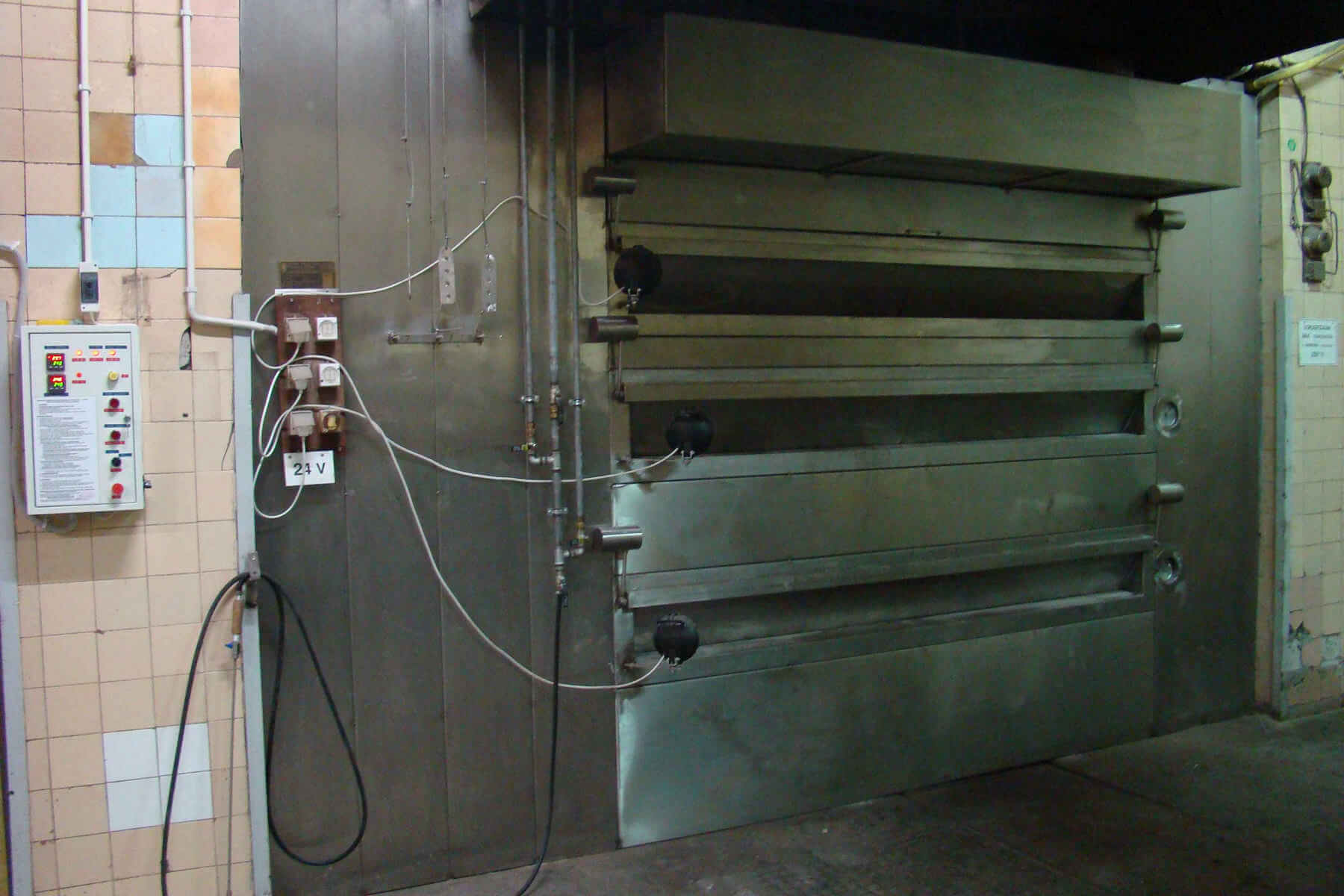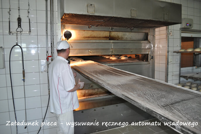 - Pełną mechanikę załadunku do komór wypiekowych przy użyciu aparatów załadowczych, z równoczesną przebudową drzwiczek pieca;